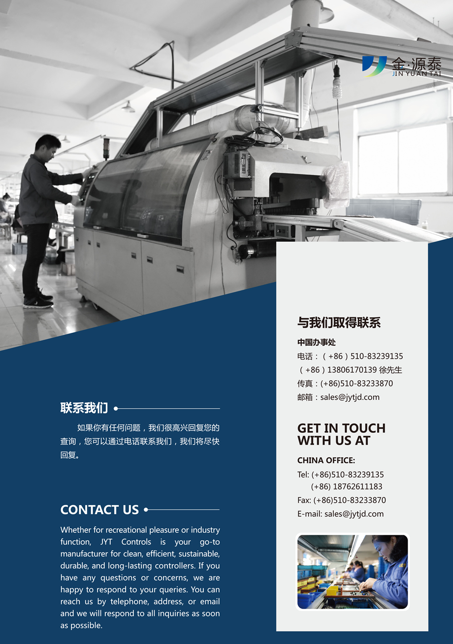 金源泰机电无锡有限公司(跃成机电科技无锡有限公司),前身无锡市锡通工贸有限公司成立于2001年,专业从事电动自行车、电动摩托车、电动三轮车、电动滑板车、电动汽车的控制器的研发、制造及销售。本公司坐落无锡市,经济发展环境优越,交通便利。金源泰凭借多年的研发技术、人才优势,不断攻克技术难题,打造高端产品。去年上市的智能矢量控制器更是具有低噪音、低损坏率、高效能的特点,赢得了广大用户的一致好评。金源泰牌直流电机控制器,深受国内外用户的首肯及推荐。